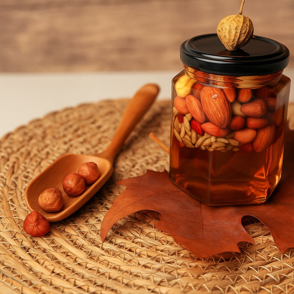 Each jar is packed with rich almonds, cashews, pistachios, figs, and raisins, carefully mixed with pure natural honey to create a delicious, nutritious, and energy-filled treat.